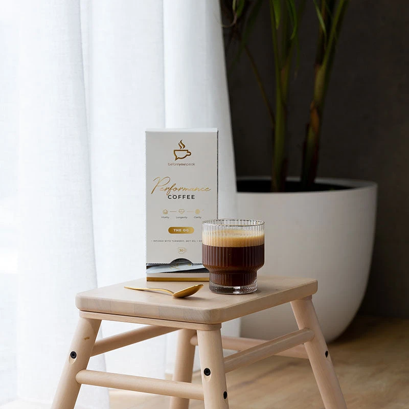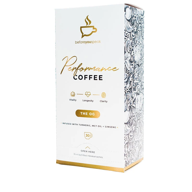 Kick start your morning with a cup of Beforeyouspeak Coffee’s High Performance Coffee – The OG. This premium Colombian blend is infused with MCT Oil, Ginseng, Turmeric, Green Coffee Bean, Black Pepper and Stevia Leaf to awaken your senses, energise your mind and get you on your way. A power-packed super food blend, this best-selling instant coffee is low calorie, keto friendly and enhanced with performance focused ingredients, making it the perfect pick for whenever you need your coffee fix.