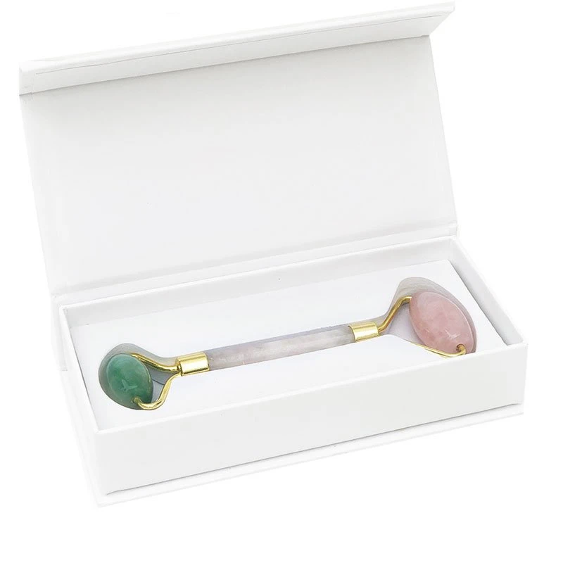 Ecococo Rose Quartz + Jade Crystal Face Roller