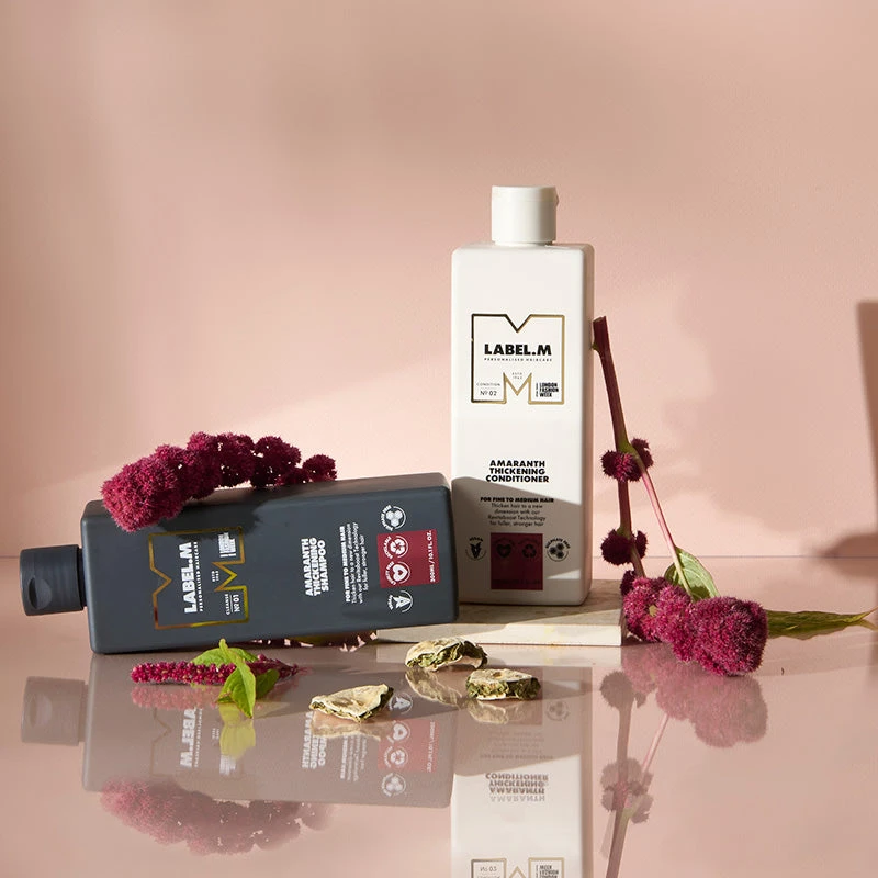 Refresh and redensify each hair fibre with this gentle thickening shampoo from LABEL.M. The exclusive Revitaboost Technology is further enhanced with botanical Amaranth seed extract to effectively plump up individual hair fibres to achieve greate hair fullness. The result is thicker, stronger and healthier looking hair with improved vitality and volume. Ideal for fine to medieum hair.