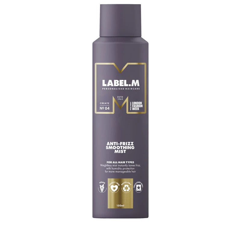LABEL.M Anti-Frizz Smoothing Mist expertly tames frizz and flyaways, restoring control with its lightweight formulation. This hair smoothing formula helps achieve sleek locks with split-end repairing properties and additional heat protection for up to 230˚C. Blow-drying is a breeze with up to 35% faster results and light hold for enhanced manageability to leave hair smooth, sleek and well protected. Ideal for all hair types.