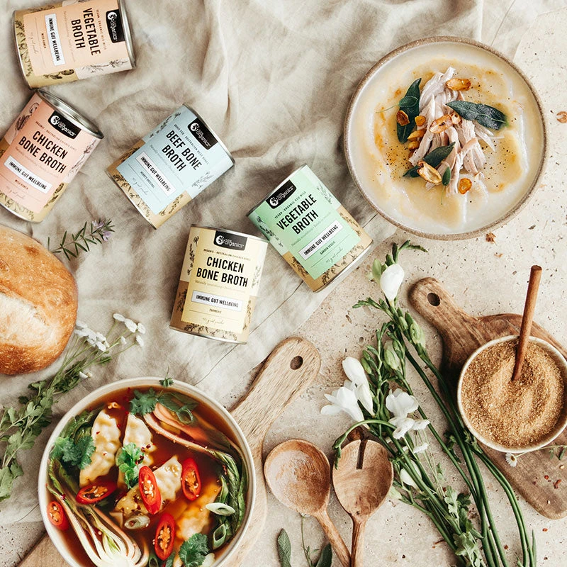 Ready in seconds and as tasty as it is nutritious, this nourishing chicken bone broth powder contains curcumin, zinc & B vitamins to support immunity, energy and gut wellbeing. Long used as a health elixir and often referred to as ‘chicken soup for the soul’, chicken bone broth helps to nourish the body from the inside out while assisting with tiredness, fatigue and gut health.