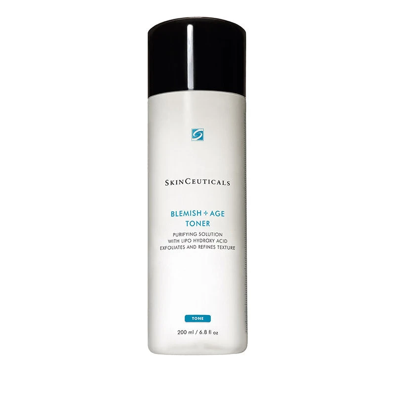 Designed for problematic skin, SkinCeuticals Blemish + Age Toner is formulated with a triple combination of exfoliating agents to remove excess residue and surface cells to decongest pores. LHA (Lipo Hydroxy Acid) provides precise and even cell-by-cell exfoliation to unclog pores while diminishing fine lines, wrinkles, discoloration and rough texture. Also recommended for rough, dull and hyperpigmented skin.Â